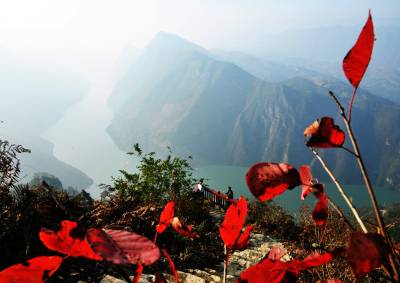 巴东大面山风景区游人如织(图)19日,一批游客正在巴东县信陵镇大面山风景区观景台欣赏满山遍野的红叶,领略长江巫峡口的壮丽。据了解,大面山因地处巫峡口,云海、红叶和连绵起伏的山峦是这里的象征,也是摄影创作者们出佳作的地方,年接待人数上万。(本报视界网梁勇向贤武摄)