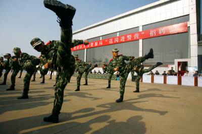 > 武警某部退伍老兵招聘会上展风采