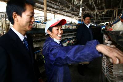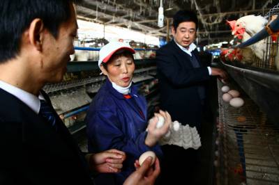 2010年11月19日,咸丰县蕊华养殖专业合作社付宝权正在拣鸡蛋。在当地农村信用社小额贷款的支持下,蕊华养殖专业合作社由6000只蛋鸡起家,经过4年发展,存栏蛋鸡已经达到50000余只,其中产蛋鸡40000余只,日产鸡蛋超过30000稞。同时,邻近近200农户也来学习养殖枝术,并自发养殖蛋鸡近30000只,日产蛋超过20000稞,所有鲜蛋全部供应咸丰县城市场,保证咸丰县城7成市民每天能吃上一稞鲜鸡蛋。杨清评