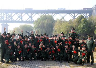 武警老兵惜别”万里长江大桥第一哨””爱比江水深,情比江水长,我们守卫在长江大桥上,多少风雨,多少暑寒,赤诚刻在我们的哨位上……”11月20日,入伍5年、守卫武汉长江大桥5年的江西籍武警战士李功水胸带红花、面对长江高唱《大桥卫士之歌》,不禁泪流满面。当日,武警武汉市支队守桥大队百余名即将退伍的武警战士,挥泪告别大桥,将执勤钢枪郑重交接给新战士。武汉长江大桥建成以来,武警武汉市支队守桥官兵在3尺哨位上用青春和汗水送走星星、迎来朝阳,一茬接一茬,被誉为”万里长江第一哨”。
