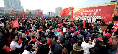 11月20日下午,《歌唱祖国》、《团结就是力量》、《在希望的田野上》等一首首脍炙人口的经典爱国歌曲在湖北省宜昌市夷陵广场上回荡。为了激发市民的爱国热情,宜昌”爱国歌曲大家唱”活动于10月全面展开,宜昌各学校、企业、机关等踊跃参与,经过各区县层层选拔,15个优秀节目进入广场展演,数千名市民到广场参与活动,展演现场,台上台下的市民一起放声高歌,展现了宜昌人昂扬向上的精神风貌。记者刘曙松摄