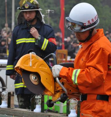 11月20日,恩施州消防支队应急救援队员正在进行灭火应急救援演练。18日至20日,恩施州2010年应急救援综合演练先后在建始、巴东、恩施等3个县市进行,内容包括危险化学品运输、煤矿事故、地质滑坡、交通事故、食物中毒及灭火应急救援演练,近万名群众现场观摩。目前,恩施州已有各级各类专业应急救援队伍172支,队员1400余人。本报视界网周光兵摄另一张图片说明为:11月20日,恩施州消防支队应急救援队员正在精准切割演练,即切断灯泡上的铁丝而不震破灯泡。