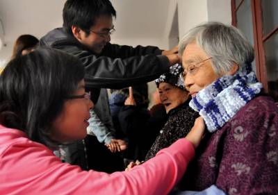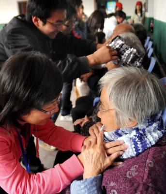 一条围脖暖人心21日,湖北师范学院的60多名青年志愿者来到向发珍老年公寓,为这里的50名老人每人送上一条围脖,祝福他们愉快度过寒冷的冬天。志愿者们亲手为老人戴上围脖,令老人们高兴不已。黄石市黄石日报摄影部邱孝威摄电话:13807232603邮编:435002