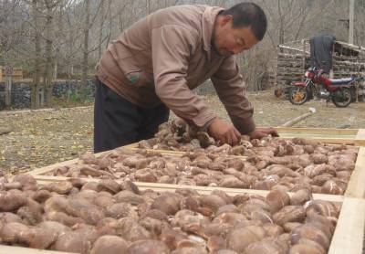 袋料香菇富山民11月21日,安陆市钱冲村农民周奇山正和妻子一起收获香菇。据了解,周奇山今年春季点种了3300袋袋料香菇;至今已收获香菇100多千克,创收5000余元。目前,安陆市香菇种植户已达上千家,年创收达500余万元。袋料香菇已成为当地农民增收致富的新途径。签约摄影师:王代金陈学斌
