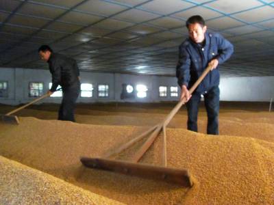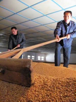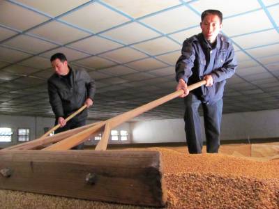 11月22日上午,郧县粮食收储公司粮仓保管员在粮食通风槽内用耙子翻耙粮食,以确保粮食通风透气。今年该县粮食储备达350万公斤,基本达到国家规定的粮食储备规模。郧县粮食局针对冬季气温下降,空气干燥的特点,为确保粮食安全,加大粮情安全检查力度,积极采取保粮措施。 (湖北郧县新闻宣传中心曹忠宏摄)