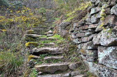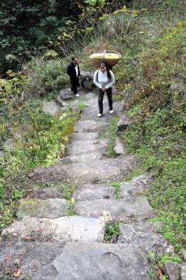 近日,湖北省宜昌市夷陵区黄花乡政府在张家口村寻子头发现了一条古驿道,当地文物考古部门通过实地考察,初步认定这条古驿道建成于清朝中晚期,驿道的用途、性质还待进一步考证。 宜昌发现的这条古驿道依山就势,虽然坡度很陡,但是行走其上,方便安全,长约两公里,宽约1.5米左右,最宽处有2米。驿道全部用坚硬的石条铺就,每一级台阶都由一块石条铺就,所以驿道规整而保存完好,几乎没有残缺的地方。用很大的石头垒起的古驿道”卡门”可以俯视山下的一举一动,形成”一夫当关、万夫莫开”的要塞。目前这条古驿道是山上100多村民出行的必经之路。本报视界网张国荣摄