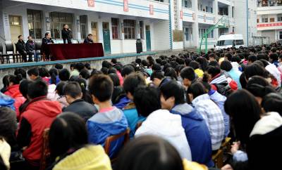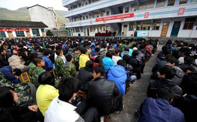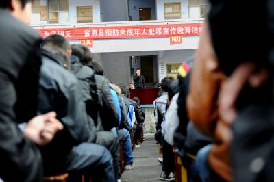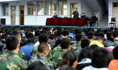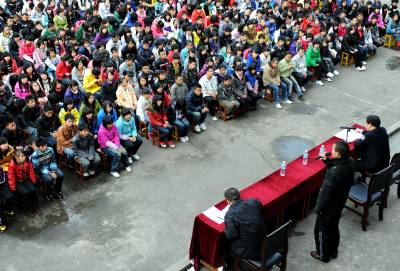 22日,宣恩县职业技术中专的1200余名学生在听恩施州劳教所的学员讲述他们”失足”的心路历程。宣恩县多渠道开展预防未成年人违法犯罪宣传教育活动,其中让未成年人走进监所参观、为”失足青年”设立”讲堂”让他们在中小学校讲述”失足”的心路历程等,对未成年人进行警示教育。本报视界网宋文摄