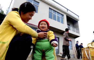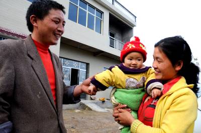 11月22日,宣恩县珠山镇七里桥村7组村民牛仕武夫妇陪着儿子在新居前玩乐。今年以来,宣恩县充分利用国家扶贫搬迁政策,整合资金298.4万元实施搬迁工程。按照”政府拨一点、部门帮一点、社会捐一点、亲朋凑一点”的资金筹集方式,采取村帮料、组帮工进行房屋就地改造、梯次搬迁、就近新建,对今年新实施的51个整村推进扶贫开发重点村启动扶贫搬迁工作。截至目前,该县有373户1500余名贫困农民搬进新居。