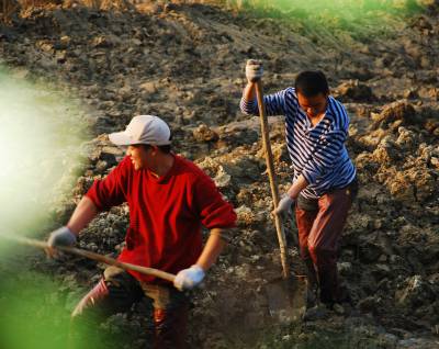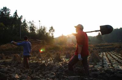 穿上胶靴、拿上铁锹,深一脚、浅一脚地走进田里,撬泥、挖沟……(图一)11月22日,北京信息科技大学毕业的杨军带着同学汤俊回到家乡咸丰县甲马池镇旋厂坝村,开始了他们的创业之路。”再苦再累,我们都要坚持,用智慧和双手创造未来,实现自我人生的价值!”两个年轻人坚定着自己的每一步。夕阳西下,两人结束了一整天充实无比的野外作业,扛着铁锹、哼着小曲儿,有说有笑向家走去(图二)。”家人的支持是我们最大的动力。”从北京”大都市”来到”山沟沟”的汤俊满心感激地说。采访手记:广阔的农村天地吸引着大学生创业农村的眼球,国家培养的高科技人才与相对落后的农村现有生态资源逐步结合起来,这不仅使国家教育资源效益得到了最大体现,还推动着现代农业的快速发展。而对于创业者来说,高素质大学生从一二线城市走向偏远山区需要勇气和魄力,更离不开亲人的支持和社会的有效关注。视界网签约摄影师徐定斌宋海燕摄作者单位:恩施日报咸丰记者站联系电话:13872711808