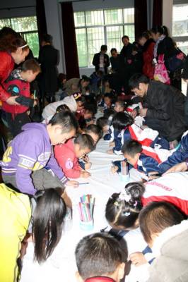 湖北省恩施市特校与市实验小学开展少先队联谊活动(通讯员余先静)”加油!加油!”的欢呼声一浪高过一浪,原来孩子们正在为”扔乒乓球”比赛的同伴们呐喊助威。11月21日下午,市特校低年级学生与实验小学一年级(3)班的少先队员开展了”同在一片蓝天下,我们共成长”的联谊活动。市特校师生、市实验小学一年级(3)班孩子、部分爱心家长参加了活动。孩子们在礼堂开展了联合文艺展演,随后在家长的带领下,两校孩子们在巨幅画布上共同绘制了”心愿”,表达了对生活的无限憧憬与热爱。到场人员被残障孩子表现出来的自强、自立精神所感动,也为孩子们互帮互助、共同成长而欣慰。最后,实验小学一(3)班的爱心家长为残障学生捐赠了价值3000余元的学习生活用品。当天,实验小学的孩子们和家长还参观了特校的食堂、教室、寝室、音乐活动室等。据悉,本次活动由实验小学一(3)班爱心家长和班主任倡议,由市特校和市实验小学少先队共同组织开展,旨在加强家校共育和促进德育创新,以提高残疾孩子和正常孩子互帮互助、热爱生活、感恩社会的良好道德品质。