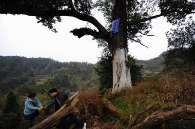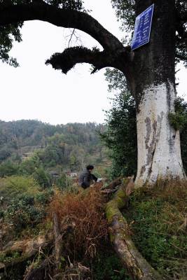11月23日,人们在宣恩县晓关侗族乡野椒园村参观千年红豆树。红豆树又称红宝树,南方红豆树,相思树。生长在宣恩县野椒园村的这棵红豆树树高31米,胸径1.585米,树龄约1200年。据当地林业部门介绍:在这棵树周围百公里范围内,目前没有发现树龄在百年以上的红豆树,甚至少有红豆树生长。林业部门试图用这棵古树生长的种子进行繁殖,但均未取得成功。本报视界网宋文熊茂平摄