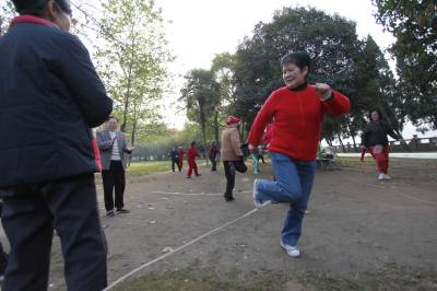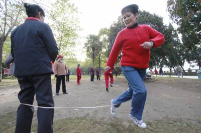 重温儿时乐11月23日,宜昌城区几位老妈妈在滨江公园里跳起橡皮筋。老人们说,这样不仅可以健身,也勾起了自己童年时的快乐回忆。本报视界网黄翔摄
