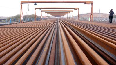 目前,石武客专湖北段进展顺利,铺轨工作已准备就绪。担负石武客专500多公司铺轨任务的中铁十一局集团横店铺轨基地已存200多公里的500米长轨。