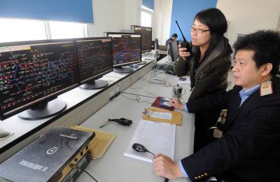 24日,调度人员正在向相关站点发布列车运行信息。宜昌火车东站如期完成各项设备安装和调试,并通过专家验收,迎接宜万铁路的开通。据介绍,这个车站为宜万铁路东起点最大的旅客集散地,预计日发送旅客6000人次,始发列车50多对。(记者杨平摄)