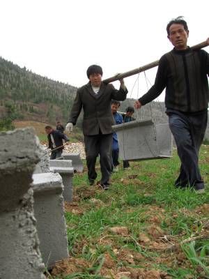 11月24日上午,郧县城关镇红河村村民正在修建引水渠。为补充耕地面积,提高土地利用率,今年县水电局为该村投资150万元用于低丘岗地改造、引水渠修建。(湖北郧县新闻宣传中心曹忠宏摄邮编442500)