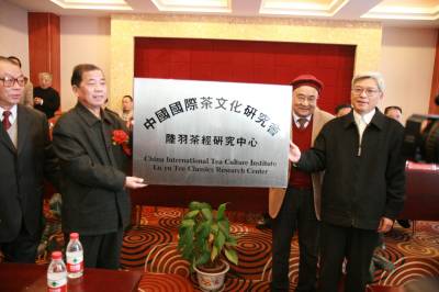 中国国际茶文化研究会陆羽茶经研究中心在天门成立11月24日上午,中国国际茶文化研究会陆羽茶经研究中心在天门成立。天门市委书记张爱国致辞,中国国际茶文化研究会副秘书长吴笑梅宣读”中国国际茶文化研究会陆羽茶经研究中心”成立的批文,中国国际茶文化研究会副会长梁朝清授牌并致辞,省政协原副主席杨斌庆、省陆羽茶文化研究会会长周年丰、天门市陆羽研究会会长肖孔斌等在成立仪式上讲话,中国国际茶文化研究会书画院副秘书长李茂荣向天门市赠送由中国国际茶文化研究会名誉会长刘枫亲笔题写的”陆羽茶经七千字”漏白书法,天门市委书记张爱国向中国国际茶文化研究会赠送桑苎楼版《茶经》陆羽像。(本报视界网刘银斌摄)