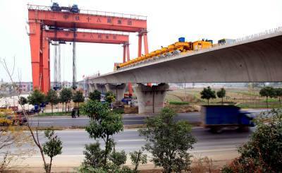 11月24日,架桥机将700吨重的最后一片大梁架在武黄城际铁路跨鄂黄公路特大桥桥墩上,全长500米的跨鄂黄公路特大桥合拢。当日,由中铁十八局集团二公司担负施工的武黄城际铁路跨鄂黄公路特大桥开始进行合拢架梁。武黄城际铁路是武汉城市圈内一条连接武汉市与黄石市、黄冈市的快速城际铁路,起自武昌(汉)站,终点是黄石大冶北站,该线路为国铁Ⅰ级双线电气化铁路,全长97公里,设计运行时速为200公里及以上,直达运行时间为26分钟。该工程估算投资170亿元。
