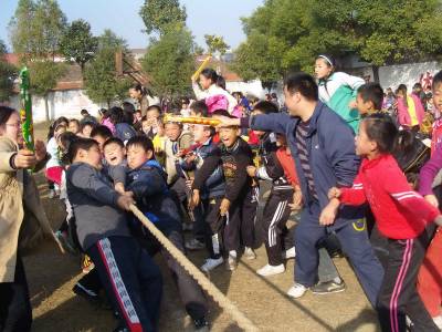 日前,钟祥市各学校积极组织学生开展”阳光体育”运动,让学生享受运动的快乐,冬日虽冷,孩子们却丝毫感受不到寒意。图为该市柴湖小学的老师们利用课外活动时间组织学生们举行拔河比赛。