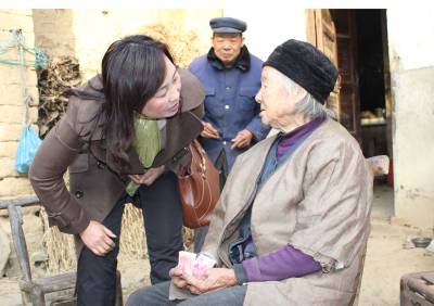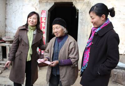 图片新闻:孝昌给百岁老人发放长寿补助金11月25日下午,孝昌县妇联和该县民政局老年办干部一道,来到该县周巷镇七姜村,将半年的长寿补贴1200元送到百岁老人焦友香手中。焦友香老人拿着这叠百元钞票激动地说:”感谢党和政府,我的2个儿子和1个孙子都是弱智,家里太穷,这百元的大钞票还是第一次见到!”宋俊初摄