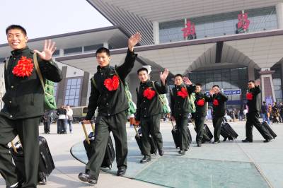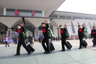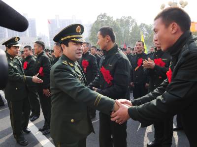 2010年11月25日下午,武警湖北总队退伍老兵统一着退役纪念服离汉返回家乡。随着国力的提高,武警部队专门为退伍老兵配发退役纪念服,一改往日退役军人无统一服装的历史。