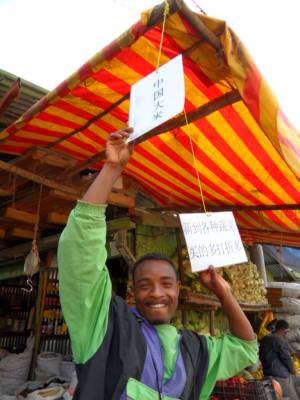 随着中国公司在非洲国家的投资于建设,中国公民在非洲国家的数量也与日俱增,中国大米和蔬菜也走俏非洲。在埃塞俄比亚,有很多的生意人也在学说中国话,还有的刮起了中国字的广告招牌,吸引中国客户,在很多超市也能买到中国的食品和商品。视界网签约摄影师周剑锋11月摄于埃塞俄比亚