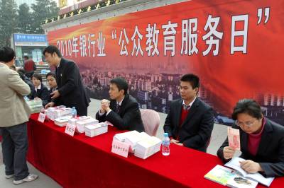 2010年11月28日,湖北武汉,市民在武汉国际会展中心广场参加银行业公众教育日活动。当日,中国银监会在全国启动首届银行公众教育日活动。据悉,本次中国银行业公众教育服务日活动以”和谐金融、美好生活”为主旨,旨在向公众普及金融知识,提高公众识别和防范金融风险的能力,加强金融消费者保护,促进银行业健康有序发展和社会和谐稳定。