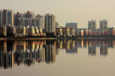 当镜头聚焦于湖景风光时,建筑是离不了的主题。
