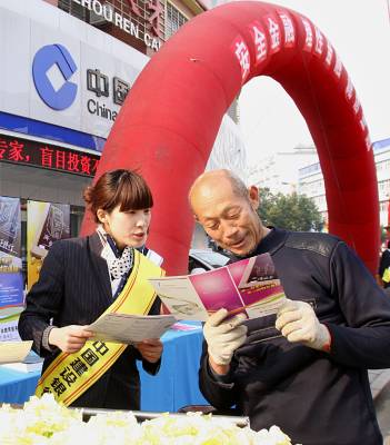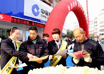 银行业摆摊提示金融风险11月28日,建行随州分行员工在银行门前向市民宣传金融知识。哪种投资方式更合理?短信提醒转账是真是假?当日,随州市银监局率全市银行工作人员在”中国银行业公众教育服务日”活动中。上街头、进社区等场所摆摊设点,向市民宣传金融知识,提示金融风险。希望通过此活动普及金融知识,提高公众识别和防范金融风险的能力。本报视界网、随州日报社杨文明摄