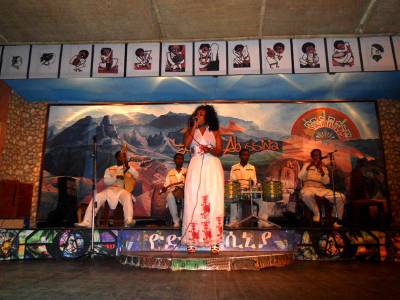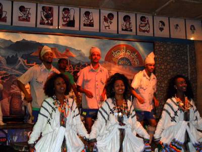 在埃塞俄比亚首都,很多酒吧有民族歌舞表演,原生态的表演吸引了很多外国的观众,大家在欣赏民族歌舞的同时,或喝啤酒、或品咖啡、或吃英吉拉食品伙爆米花,气氛十分热烈,酒吧生意红红火火。视界网签约摄影师周剑锋11月摄于亚的斯亚贝巴