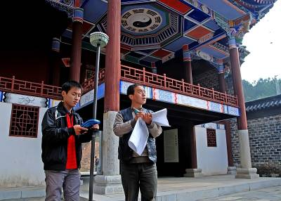 11月28日,武汉勘测设计院工作人员正在对木兰湖附近的古民居进行GPS定位测试。近年来,城镇建设日新月异,新的规划不断完成实施。从今年下半年起,该院开始对黄陂区进行测量,为城镇的新版图提供更准确的建设数据。