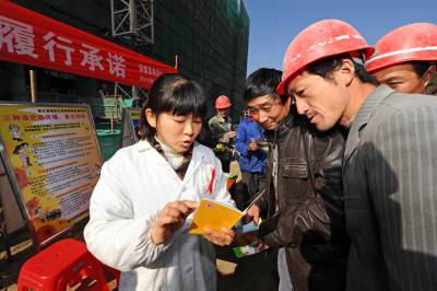 今年的12月1日是第23个世界艾滋病日,宣传主题是”遏制艾滋,履行承诺”。为了做好今年世界艾滋病日宣传工作,11月29日,保康县疾控中心组织工作人员深入城区建筑工地,为建筑工人开展艾滋病防治宣传教育,进行面对面咨询,发放宣传资料和安全套,普及艾滋病防治知识。(本报视界网杨韬摄)