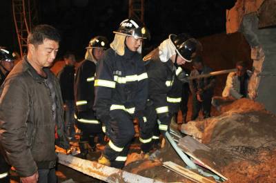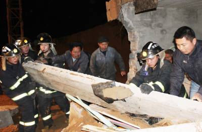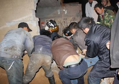 沙厂看守平房坍塌一民工被埋 孝昌消防官兵现场刨废墟救人(组图)