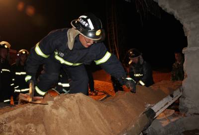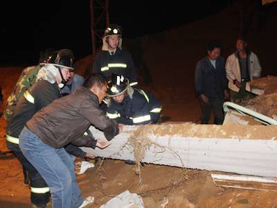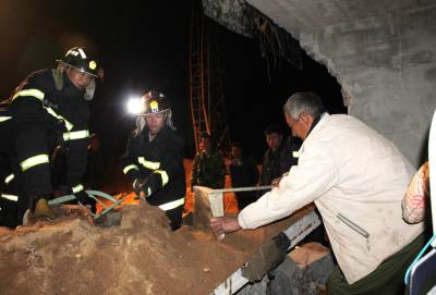11月30日早晨,孝昌县花园镇火星村沙场看守房突然发生坍塌,一民工被掩埋在废墟下,孝昌县消防中队官兵赶到现场刨开废墟瓦砾,遗憾的是被埋民工最终没能生还。当日早晨5时20分许,孝昌消防中队出动一辆抢险车和7名官兵赶到现场发现,沙场看守房西侧部分坍塌,一民工被坍塌的墙体和2块预制板和黄沙叠压在下面。排长涂志威首先指挥消防战士清理完上面的黄沙后,挪开了最上面的一块预制板,又露出一层黄沙。战士们发现,黄沙下面还有一块预制板和倒塌墙体。时间紧急,战士们与民工一道,扒开第二块预制板上的黄沙。5点30分许,第二块预制板被抬开。战士们在几名民工的帮助下,又挪开了被埋民工北边一块叠压的墙体。5点40分许,被埋民工被抬了出来,早已等候在这里的120急救医生检查发现,已经没有了生命迹象。宋俊初摄