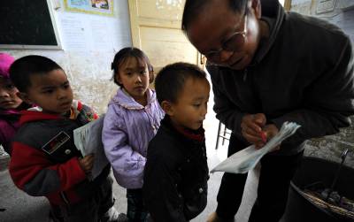 11月29日,宣恩县李家河乡板栗园村的三胞胎兄弟杨天、杨才、杨宝三兄弟在学校合影留念。当日,网友为三胞胎兄弟杨天、杨才、杨宝送去文具。据了解,三兄弟的母亲在2004年孩子刚出生就去世,而他们的爷爷又双目失明需要照顾,家庭十分困难。当地新闻网站从三兄弟出生就持续关注他们的成长,发动网友捐钱捐物,使他们开心读书,健康成长。本报视界网宋文摄