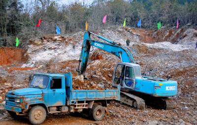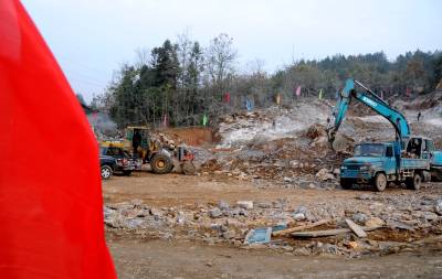 11月30日,施工人员在恩来、恩黔高速公路共用段宣恩县椒园镇椒园村境内对开工仪式场地进行施工。目前,这两条高速公路的开工准备工作正加紧进行。据悉,恩施至来凤(恩来)、恩施至重庆黔江(恩黔)两条高速公路与沪渝高速公路恩施西出口相通,设计速度80公里/小时,按路基宽度24.5米、四车道高速公路标准建设。两条高速公路全长168.8公里(其中共用段约32公里),概算总投资136亿元,总建设工期48个月。这两条高速公路控制性工程计划今年12月底开工。