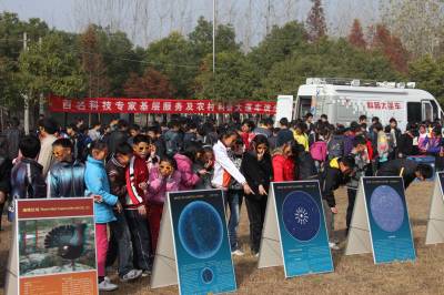 ”零距离”接触科技品尝”科普套餐”11月30日,一台台神奇的科普仪器,让天门市渔薪龙华中学学生大开眼界。当日,由天门市科协组织的为期一月的百名科技专家基层服务行活动拉开帷幕,活动期间,该市将进行科普大篷车演示、发放科普资料、专家科技讲座,把电学、光学、数学、生命科学、生物学、天文学、多媒体等学科方面的科技知识带给群众,让”三农”与科技”零距离”接触,架起致富金桥。(本报视界网刘银斌摄)
