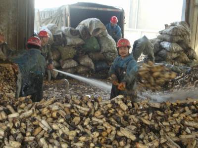 图片报道:对莲藕进行深加工 近段时间以来,经过技改扩能后的汉川市麻河镇百信藕业有限公司依托当地丰富的莲藕资源优势,对肠子藕、尾藕及弃藕进行深加工,研制成营养成份丰富的纯藕粉。据该公司负责人介绍,目前公司纯藕粉生产车间的日吞吐量是5吨左右,日产值达5万元以上。图为12月1日,该公司纯藕粉生产线一号车间的员工正在对莲藕进行深加工的情景。 签约摄影师邹开建摄通联:汉川市麻河镇党政办公室 电话:13197382491