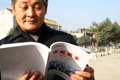 本报签约摄影师颜义众:11月30日,竹溪县中峰镇汤家坝村村民阅读赠送到手的《市民读本》。此书由该县精神文明建设委员会办公室免费赠阅。竹溪文明素质教育丛书分《干部读本》和《市民读本》,由中共竹溪县委宣传部和竹溪县精神文明建设委员会办公室合力编著。《市民读本》现正式公开发行,《干部读本》于去年10出版发行。据了解,《市民读本》出版发行后首次赠送汤家坝村每户一本,以后将陆续向全县农村每户赠送。