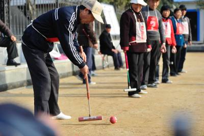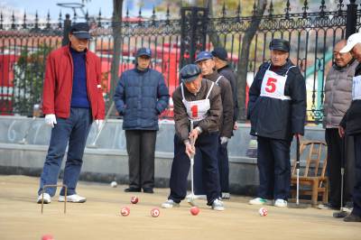 当日,由保康县门球协会主办的保康县2010年冬季老年门球比赛在该县沿河公园举行,来自全县的11支老年门球队80多名球员参加了比赛,享受着门球带来的快乐。(本报视界网杨韬摄)