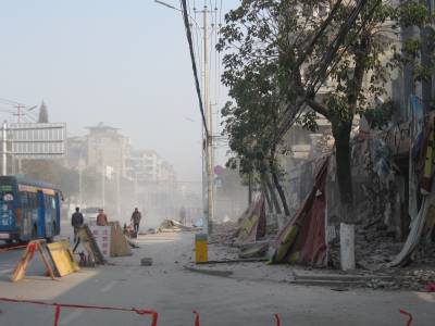 12月1日上午,本是一个阳光灿烂的日子。可是在荆州市红门路上,一个房屋拆除工地在没有任何防尘措施情况下,使用大型机械拆除一栋六层高楼,致使灰尘暴起,遮天蔽日,红门路上的车辆、行人都淹没在灰尘之中,附近商铺更是深受其害。