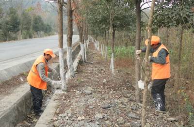 湖北省竹溪县公路局不断强化公路绿化工作,全局今年新植、补植路树100多公里,其中补植50多公里,共植树达2万多株,生态公路建设初见成效。图为12月1日305省道楸木垭管理站工人在刷行道树防治病虫害的镜头。地址:湖北省竹溪县公路局周元龙周泉顺摄邮编:442300电话:15327964016
