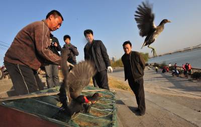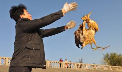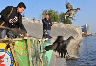 12月2日下午,湖北省襄樊市森林公安分局将查获的1284只野生保护动物进行放生,让它们回归自然。 11月30日,根据掌握的线索,襄樊市森林公安分局干警从襄樊开往广东湛江的火车上查获并收缴了大量的野生保护动物,经过侦察发现,是安陆一贩运者将野生动物从安陆运往襄樊,从襄樊转手准备运往湛江的。 当天放生的有湖北省级野生保护动物水鸡1274只,国家级野生保护动物大麻(开+鸟)一只,湖北省级野生保护动物狗獾9只,公安干警根据这些野生保护动物的生存环境,在汉江和森林进行了放生。