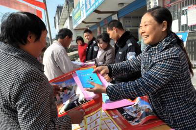 2010年12月3日,在12月4日”全国法制宣传日”到来之际,湖北省宜昌市夷陵区通过现场悬挂横幅、摆放展牌、发放宣传资料等形式,向群众宣讲信访维权、土地管理、妇女儿童权益保护、人口与计划生育等法律法规知识,各学校也通过发放安全知识读本、”交警护学岗”民警”送安全进校园”等形式开展安全教育活动,营造了全民自觉学法、守法、用法的良好社会氛围。本报视界网张国荣摄