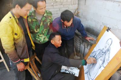 IP为:119.99.71.212罗田农民画家李兴世一生绘画不停息今年53岁的黄冈市美术家协会会员、罗田农民李兴世有35年的绘画历史,他所创作的绘画作品大多是反映民风民俗的农村生活题材,深受广大人民群众的喜爱。三十余年来,他有大量作品获得省、市、县优秀奖,不少绘画作品被来罗田旅游的外国游客收藏。尽管李兴世家庭经济条件不是很富裕,可他痴情绘画的兴趣仍然不减当年,坚持四处采风写生。这是3日下午,李兴世(右一)在家和罗田部分农民美术爱好者切磋人像素描技艺。图二李兴世新作《山村挂面图》本报视界网王志高林永迪摄