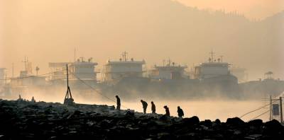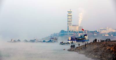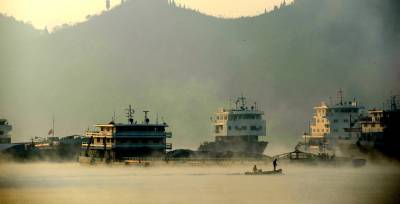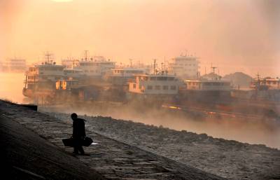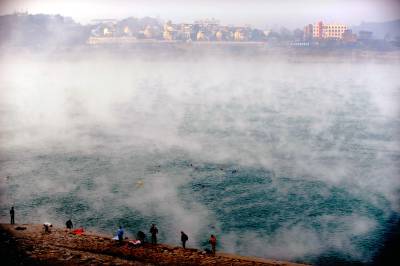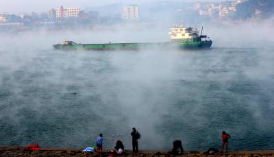 4日清晨,长江湖北宜昌市城区江段被淡淡的江雾笼罩,婉约秀美的晨雾平平在沿着江水弥漫开来,长江上穿行的轮船和冒着寒冷冬泳的人们宛若置身水墨画中一样。随着冬季的来临,宜昌江段的清晨由于江水温度高于气温,从江水中散发的淡雾已经成为宜昌不可多得的美景。记者刘曙松摄