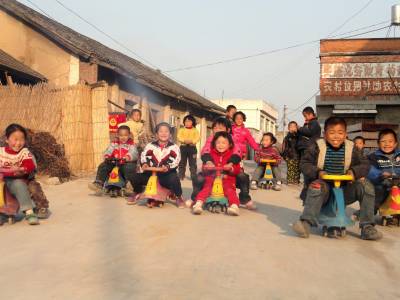 郧县刘洞镇政府在今年的集镇升级改造中利用街边死角空地,特意为孩子们硬化了一块安全的活动场地。图为12月4日,周末放假在家的小学生们在场地上快乐的玩耍。(湖北省郧县刘洞镇九年一贯制学校高超/摄邮编442525)