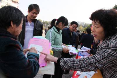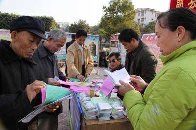 12月3日下午,郧县综合执法局执法人员正向前来咨询的市民讲解矿管资源法。当天郧县综合执法局、司法局、公安局等二十余家单位在该县文化广场通过现场悬挂横幅、摆放展牌、发放宣传资料等形式,向市民宣讲信访维权、土地管理、妇女儿童权益保护、人口与计划生育等法律法规知识。(湖北郧县新闻宣传中心曹忠宏摄邮编442500)