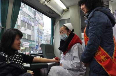 元月1日,湖北民族学院一名大学生走上停靠在恩施街头的采血车捐献了300毫升血液,成为今年恩施州第一位无偿献血者。刚刚过去的2010年,恩施州共有26088人次参加无偿献血,总献血量达807.06万毫升,分别比上年增长7.84%和8.88%,从而使得全州临床用血自2007年起连续四年保持100%来自无偿献血。更为难得的是,当武汉血液中心血液库存告急时,恩施州还一度紧急调血支援。本报视界网周光兵摄