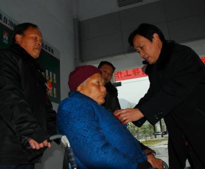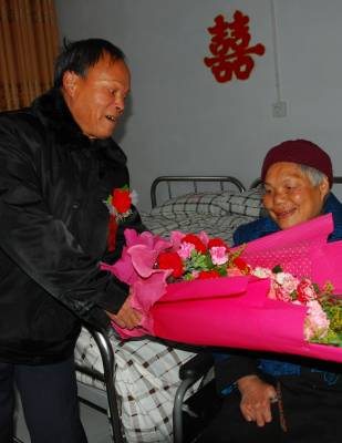 轮椅上的婚礼1月1日,一场特殊的”轮椅上的婚礼”在位于咸丰县县城的恩施州麻风病防治中心举行。64岁的新郎李大友和65岁的新娘王泽菊同是该中心的麻风病人,他们在大雪纷飞的日子里感受着”家”的温暖。上午10时,中心负责人为轮椅上的王泽菊戴上了”新娘”胸花(图一)。之后,李大友高兴地推着轮椅上的新娘进入布置一新的洞房(图二),两上脸上挂满了开心的笑容。”咱俩一同白头偕老!”走进洞房,李大友手捧鲜花,道着心愿(图三)。听说麻风病中心的老人喜结良缘,邻近市民纷纷前往祝贺,而两位老人快乐地将幸福分享给大人和小孩(图四)。(记者徐定斌恩施新影像传媒网华红摄)采访手记:谈”麻”色变的日子一去不复返了!麻风病患者,从解放前的弃之山野,到偏远的”麻风村”集中治疗,再到如今在县城中心集中疗养,他们感受到了党和政府的无限关爱。李大友与王泽菊的喜结良缘,众多市民的亲临祝贺,不仅让他们在麻风病防治中心感受到了”家”温暖,感受到更多的是社会大家庭对全体麻风病患者的爱和温暖。作者单位:恩施日报咸丰记者站联系电话:138727118081月1日,一场特殊的”轮椅上的婚礼”在位于咸丰县县城的恩施州麻风病防治中心举行。64岁的新郎李大友和65岁的新娘王泽菊同是该中心的麻风病人,他们在大雪纷飞的日子里感受着”家”的温暖。上午10时,中心负责人为轮椅上的王泽菊戴上了”新娘”胸花(图一)。之后,李大友高兴地推着轮椅上的新娘进入布置一新的洞房(图二),两上脸上挂满了开心的笑容。”咱俩一同白头偕老!”走进洞房,李大友手捧鲜花,道着心愿(图三)。听说麻风病中心的老人喜结良缘,邻近市民纷纷前往祝贺,而两位老人快乐地将幸福分享给大人和小孩(图四)。(记者徐定斌恩施新影像传媒网华红摄)采访手记:谈”麻”色变的日子一去不复返了!麻风病患者,从解放前的弃之山野,到偏远的”麻风村”集中治疗,再到如今在县城中心集中疗养,他们感受到了党和政府的无限关爱。李大友与王泽菊的喜结良缘,众多市民的亲临祝贺,不仅让他们在麻风病防治中心感受到了”家”温暖,感受到更多的是社会大家庭对全体麻风病患者的爱和温暖。作者单位:恩施日报咸丰记者站联系电话:13872711808