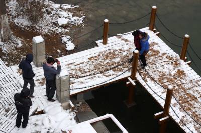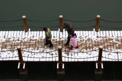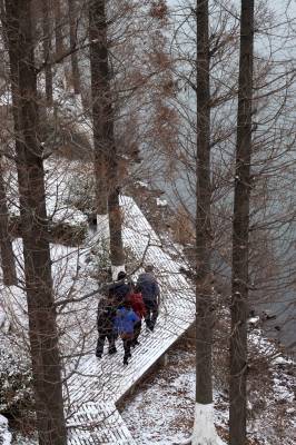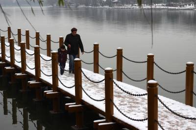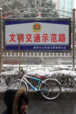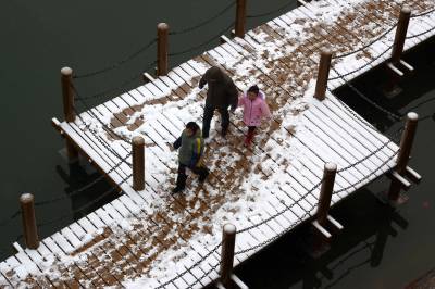 2011年1月2日,湖北省襄阳市,市民在小雪中行走。当天凌晨,该市飘下2011年首场雪,但到了下午,小雪即停。